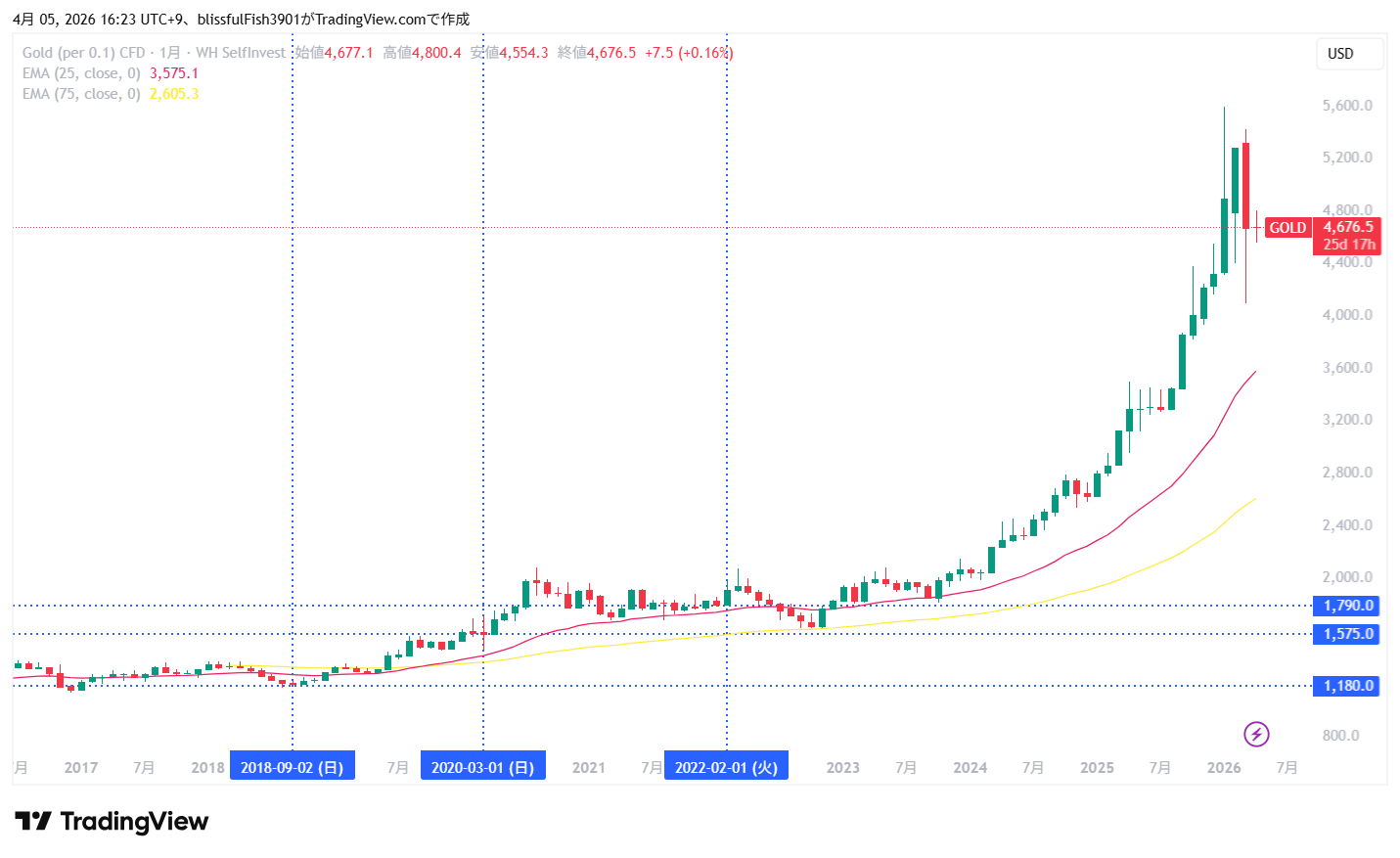 TradingView (GOLD 月足チャート)