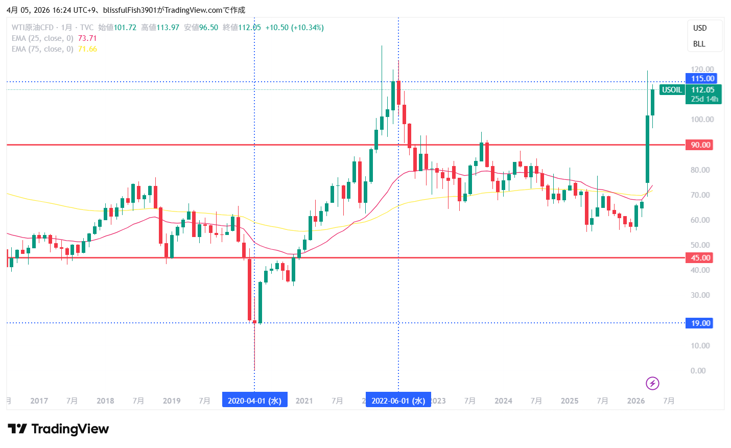 TradingView (WTI原油 月足チャート)