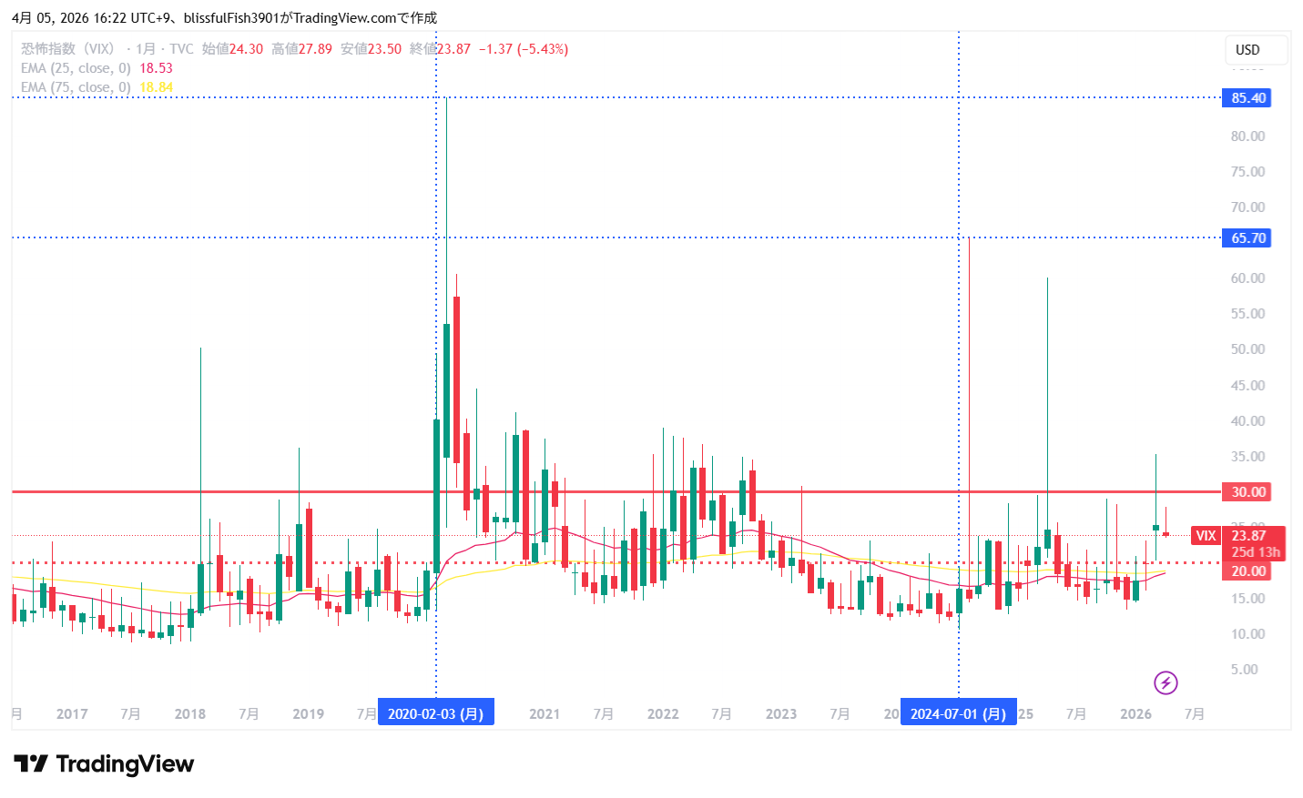 TradingView (VIX指数月足チャート)